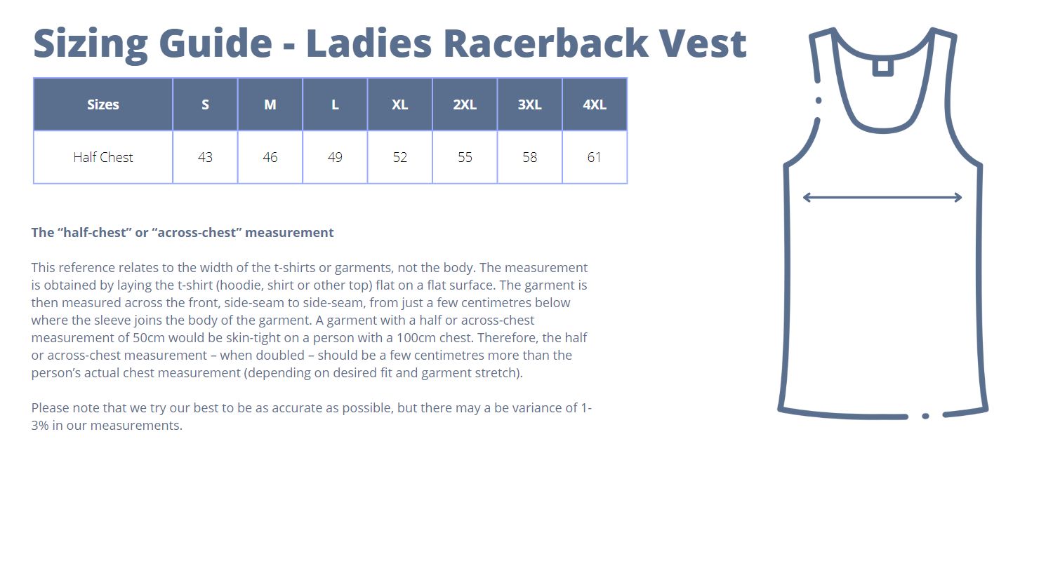 Sizing Guide Ladies Racerback Vest