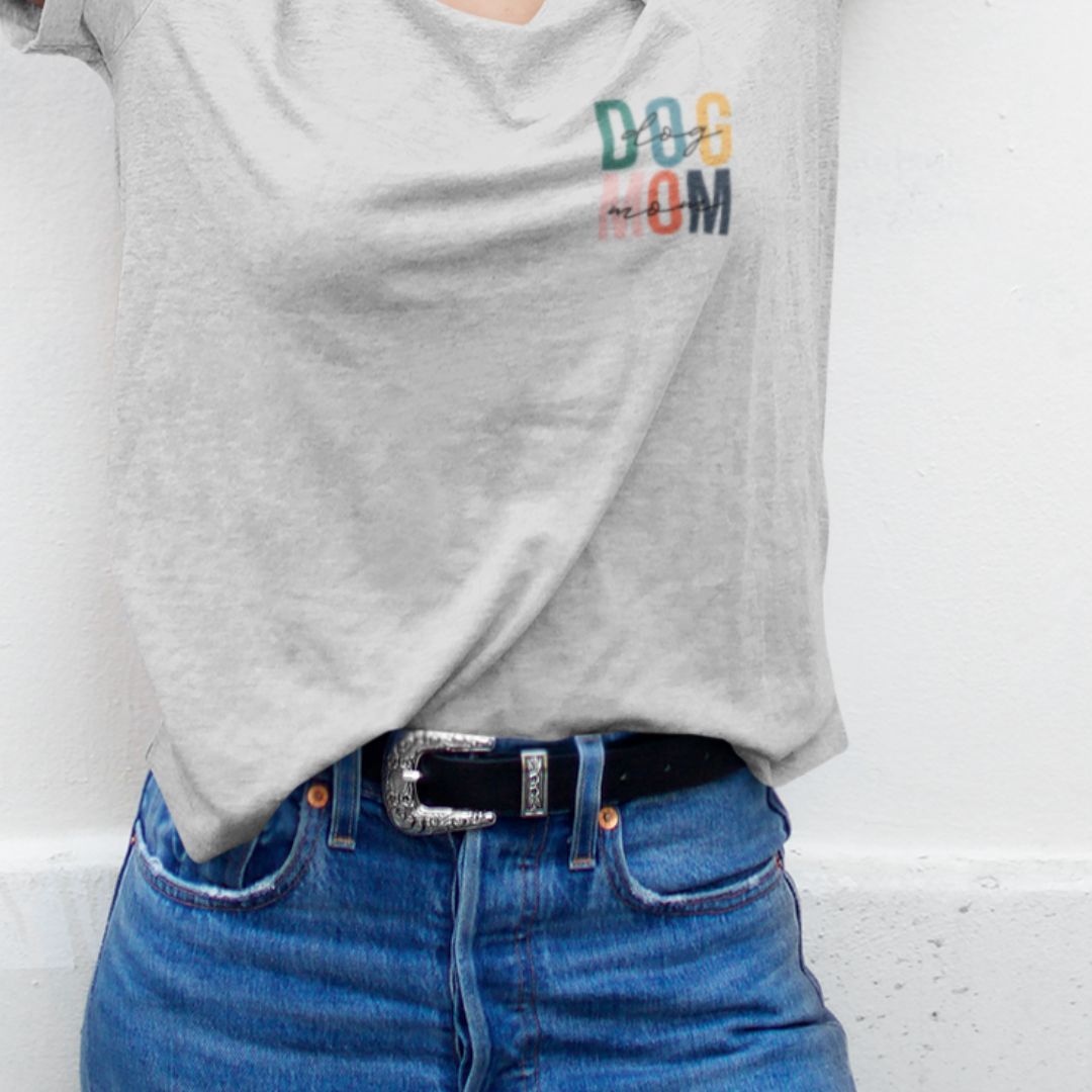 Introducing our ‘Dog Mom Pocket Colours Tshirt’ – a sophisticated choice for dog moms who love a more understated style. This T-shirt features a small, elegant pocket print, a subtle variation of our larger Dog Mom Colours Print, perfect for those who prefer a minimalist approach to showing their dog mom status.