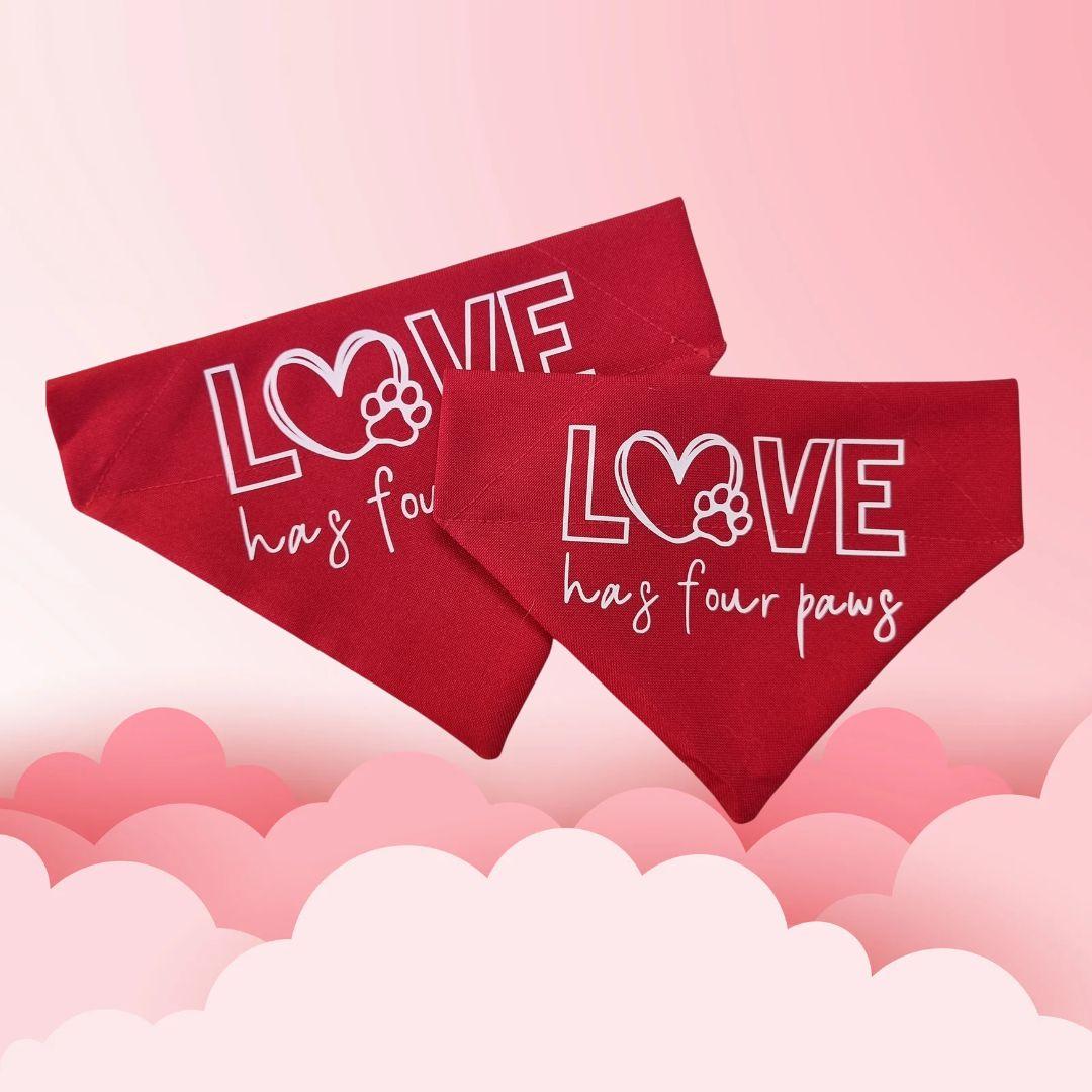 This Love has four paws dog bandana is designed to slip over your dog’s existing collar, making it easy to use and comfortable for your fur-kid to wear. Made from soft yet sturdy material, this bandana is made to last through MANY home photo shoots (we see you! ;-))